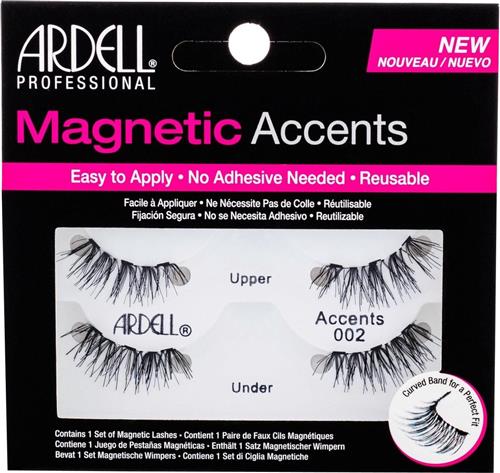 De Ardell Magnetische Wimpers Accent 002 in de kleur zwart zijn herbruikbaar en laten je ogen stralen. Met echte haar ingrediënten zorgen deze wimpers voor een natuurlijke look die de hele dag blijft zitten. De magnetische strip zorgt voor eenvoudig aanbrengen en verwijderen, zonder gedoe met lijm. Een must-have voor elke make-up liefhebber!