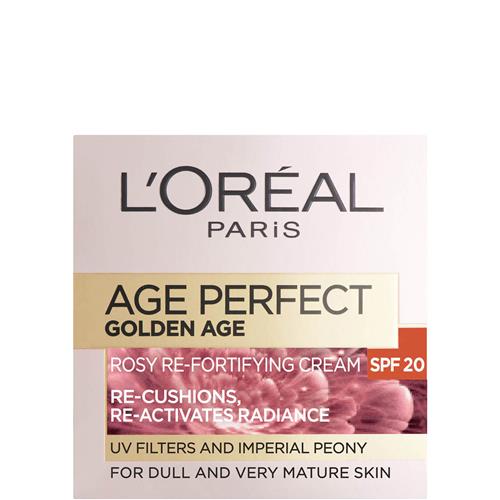 - Bij Bol.com kun je L'Oréal Age Perfect Golden Age Rosy Re-Fortifying Dagcrème - 50 ml (licht beschadigd doosje) kopen voor de prijs van € 22,99. Dit is vandaag de goedkoopste webshop.