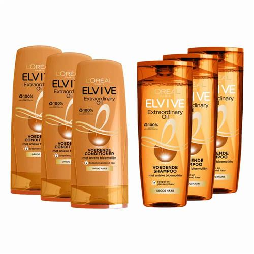 - De goedkoopste webshop om L'Oréal Elvive Extraordinary Oil - Shampoo 3x 250 ml & Conditioner 2x 200 ml - Pakket te kopen is voor het laatst gecontroleerd op vrijdag 23 januari 2026.