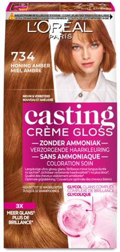 - Bij Bol.com kun je L'Oréal Paris Casting Crème Gloss 734 - Goudkoperblond - Haarverf kopen voor de prijs van € 36,99. Dit is vandaag de goedkoopste webshop.