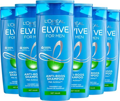 Laagste prijs € 27,59 voor L'Oréal Paris Elvive Anti-Roos For Men Shampoo Voordeelverpakking - 6 x 250ml is gemeten op 18-08-2025.