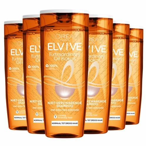 - Bij Bol.com kun je L'Oréal Paris Elvive Extraordinary Oil Fijne Kokosolie - Shampoo - Normaal/Droog Haar - 6 x 250ml kopen voor de prijs van € 21,87. Dit is vandaag de goedkoopste webshop.