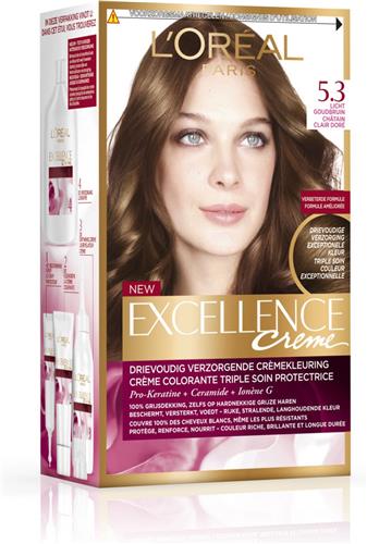 - Bij Bol.com kun je L'Oréal Paris Excellence Crème Goud Lichtbruin 5.3 - Permanente Haarkleuring kopen voor de prijs van € 14,01. Dit is vandaag de goedkoopste webshop.