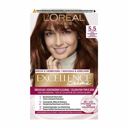 - Bij Bol.com kun je L'Oréal Paris Excellence Crème Licht Mahoniebruin 5.5 - Permanente Haarkleuring kopen voor de prijs van € 14,01. Dit is vandaag de goedkoopste webshop.
