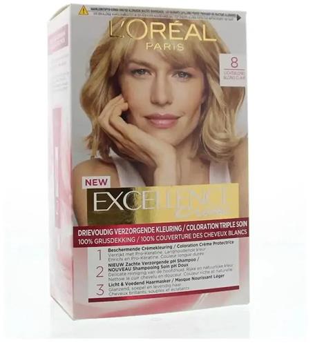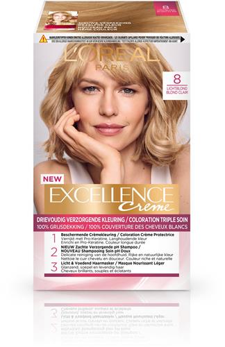 - Bij Bol.com kun je L'Oréal Paris Excellence Crème Lichtblond 8 - Permanente Haarkleuring kopen voor de prijs van € 13,99. Dit is vandaag de goedkoopste webshop.