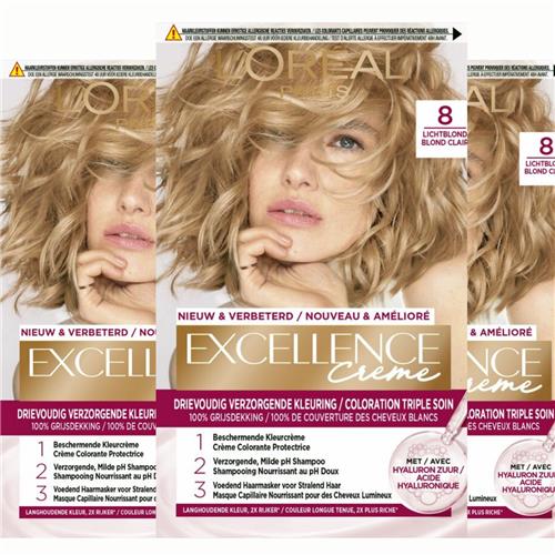 - Bij Bol.com kun je L'Oréal Paris Excellence Crème Lichtblond 8 - Permanente Haarkleuring kopen voor de prijs van € 14,01. Dit is vandaag de goedkoopste webshop.