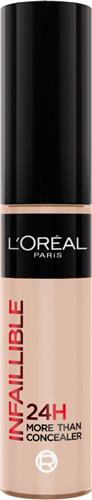 Met een inhoud van 11 ml is deze concealer handig om mee te nemen en geschikt voor dagelijks gebruik. Door de volledig dekkende formule krijg je een feilloze finish en een egale teint. De concealer is speciaal ontwikkeld om niet in fijne lijntjes te trekken en zorgt voor een egale en stralende teint gedurende de dag. Verberg imperfecties en creëer een egale look met de L'Oréal Paris Infaillible More Than Concealer!