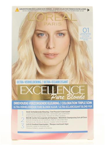 - Bij Bol.com kun je L'Oréal Paris Pure Blond Verheldering Lichtblond 01 - Verhelderende Permanente Haarkleuring kopen voor de prijs van € 19,99. Dit is vandaag de goedkoopste webshop.