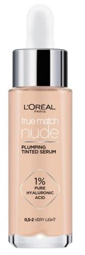 - Op dit moment is L'Oréal Paris True Match Nude Volumegevend Getint Serum Foundation met hyaluronzuur - 0.5-2 Very Light - 30ml - Vegan in de aanbieding bij Bol.com. Profiteer van deze aanbieding!