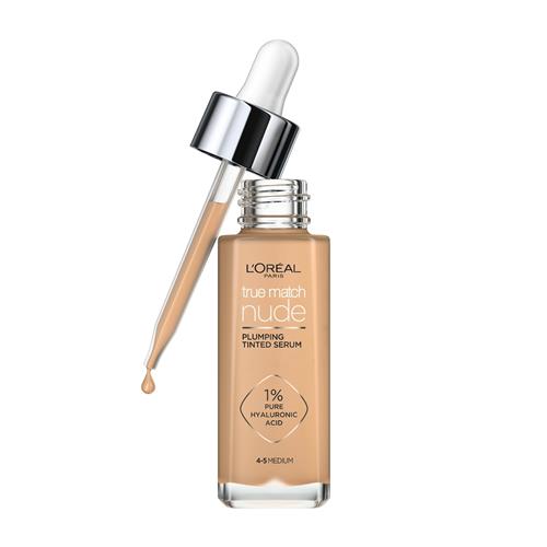 - Bij LOOKFANTASTIC kun je L'Oréal Paris True Match Nude Volumegevend Getint Serum Foundation met hyaluronzuur - 4-5 Medium - 30ml - Vegan kopen voor de prijs van € 12,64. Dit is vandaag de goedkoopste webshop.