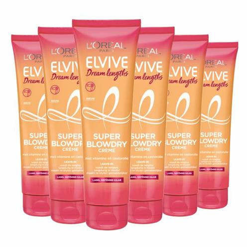 - Bij Bol.com kun je LOréal Paris Elvive Dream Lengths Blowdry Cream - Lang, Beschadigd Haar - 6 x 150ml kopen voor de prijs van € 49,05. Dit is vandaag de goedkoopste webshop.