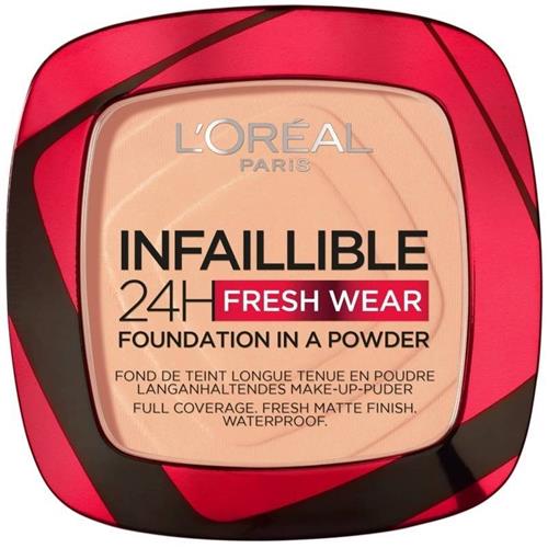 - De goedkoopste webshop om LOréal Paris Infaillible 24h Fresh Wear Foundation in a Powder - poeder - foundation en poeder in één - 24 uur lang een natuurlijke, egale en matte finish - geeft niet af - 245 Golden Honey - 9 gr. te kopen is voor het laatst gecontroleerd op vrijdag 23 januari 2026.