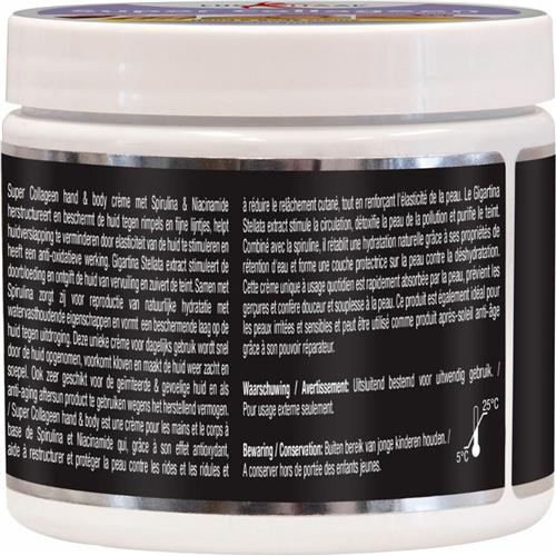 De Lucovitaal Collageen Hand & Body Crème met Spirulina en B3 Niacinamide is een krachtige crème die de huid herstructureert en beschermt tegen rimpels en fijne lijntjes. Door de elasticiteit van de huid te stimuleren helpt deze crème huidverslapping te verminderen, terwijl de anti-oxidatieve werking de huid beschermt tegen schadelijke invloeden van buitenaf.