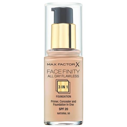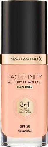- Bij Bol.com kun je Max Factor Facefinity All Day Flawless 3-in-1 Liquid Foundation - 050 Natural kopen voor de prijs van € 10,45. Dit is vandaag de goedkoopste webshop.