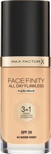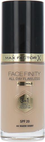 - Bij NiceBeauty kun je Max Factor Facefinity All Day Flawless 3-In-1 Vegan Foundation 044 Warm Ivory kopen voor de prijs van € 17,00. Dit is vandaag de goedkoopste webshop.