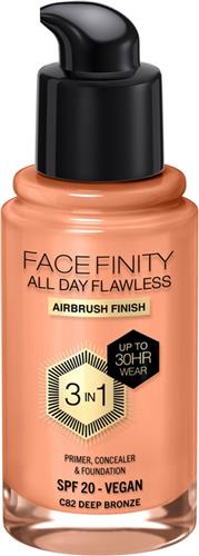 - Bij Plein kun je Max Factor Facefinity All Day Flawless Foundation - C82 Deep Bronze kopen voor de prijs van € 19,99. Dit is vandaag de goedkoopste webshop.