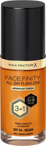 - Bij Bol.com kun je Max Factor Facefinity All Day Flawless Foundation - W91 Warm Amber kopen voor de prijs van € 9,98. Dit is vandaag de goedkoopste webshop.