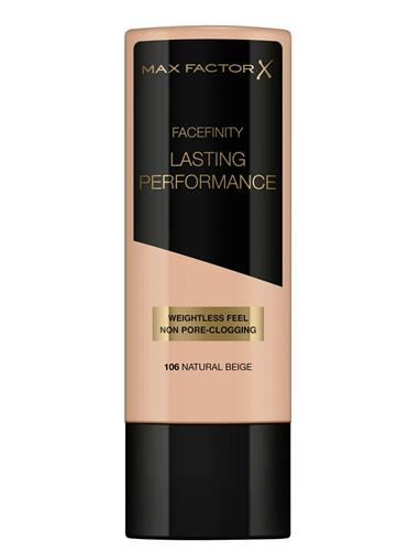 - Bij Bol.com kun je Max Factor Lasting Performance Foundation - 106 Natural Beige kopen voor de prijs van € 10,66. Dit is vandaag de goedkoopste webshop.