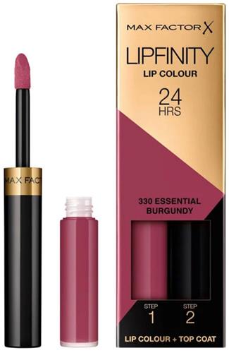 - Bij Plein kun je Max Factor Lipfinity Essential Lippenstift - 330 Burgundy kopen voor de prijs van € 20,99. Dit is vandaag de goedkoopste webshop.