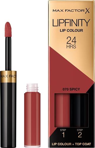 - Bij Bol.com kun je Max Factor Lipfinity Lip Colour Lippenstift - 070 Spicy kopen voor de prijs van € 10,55. Dit is vandaag de goedkoopste webshop.