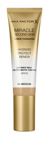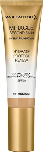 Ontdek de Max Factor Miracle Second Skin Foundation in de kleur 05 Medium, de perfecte foundation die jouw huid vernieuwt, beschermt en hydrateert. Met een medium dekkende formule die onzuiverheden en imperfecties vervaagt, zorgt deze foundation voor een egale teint en een stralende huid.