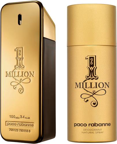 - Bij Bol.com kun je Paco Rabanne 1 Million Eau De Toilette Spray 100ml Deodorant Spray 150ml Parfumset voor Heren kopen voor de prijs van € 99,99. Dit is vandaag de goedkoopste webshop.