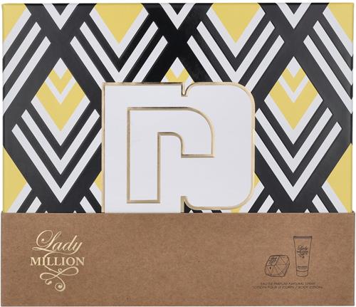 - Bij Bol.com kun je Paco Rabanne Lady Million Giftset, eau de parfum 50ml + bodylotion 75ml kopen voor de prijs van € 81,99. Dit is vandaag de goedkoopste webshop.