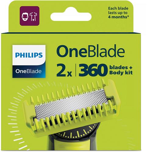 - Bij Bol.com kun je Philips OneBlade 360 Blade Body Kit - Vervangmesjes Body Kit - 2 stuks - QP624/50 kopen voor de prijs van € 23,70. Dit is vandaag de goedkoopste webshop.