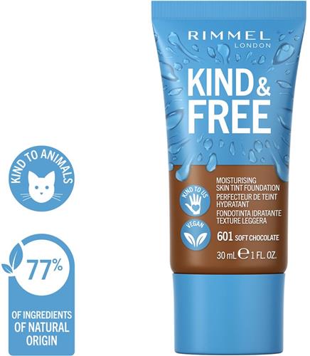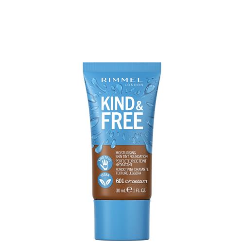 De Rimmel London KIND & FREE hydraterende foundation in de kleur 601 Soft Chocolate is een 100% vegan product dat niet alleen goed is voor jou, maar ook voor de planeet. Met een lichte formule egaliseert het je huidskleur, verbergt het oneffenheden en zorgt het voor een optimale hydratatie. De foundation is verrijkt met een mix van antioxidanten, waaronder vitamine E, provitamine B5 en aloë vera-extract, waardoor je huid stralend oogt.