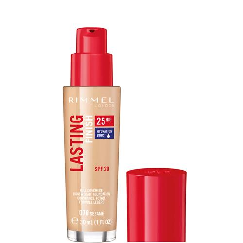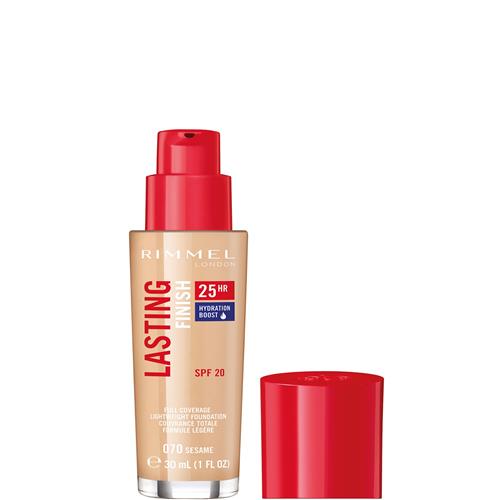 De Rimmel London Lasting Finish Foundation in de kleur 070 Sesame zorgt voor een egale, stralende huid die tot wel 25 uur blijft zitten. Deze langhoudende foundation smelt perfect samen met de huid en biedt een medium tot volledige dekking zonder een zwaar gevoel achter te laten. Met de toegevoegde vitamine E wordt je huid beschermd tegen vrije radicalen, terwijl de SPF20 beschermt tegen schadelijke zonnestralen.