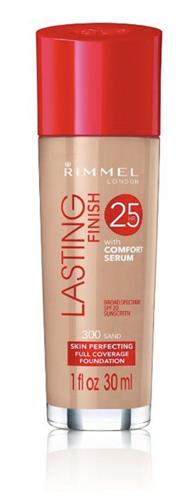 Rimmel London Lasting Finish Foundation in de kleur 300 Sand zorgt voor een egale, stralende huid die van 's morgens vroeg tot 's avonds laat geweldig aanvoelt. Met een medium tot volledige dekking verdwijnt de zichtbaarheid van lijntjes, poriën en onzuiverheden als sneeuw voor de zon. Deze langhoudende foundation smelt perfect samen met de huid en is veeg- en zweetproof. Bovendien bevat de Rimmel Lasting Finish Foundation SPF en heeft een lichte, fluweelzachte textuur die gemakkelijk aan te brengen is.