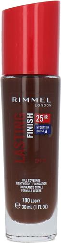 - Bij Bol.com kun je Rimmel London Lasting Finish Foundation - 700 Ebony kopen voor de prijs van € 7,82. Dit is vandaag de goedkoopste webshop.