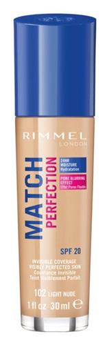 - Bij Bol.com kun je Rimmel London Match Perfection Foundation - 102 Light Nude kopen voor de prijs van € 8,69. Dit is vandaag de goedkoopste webshop.