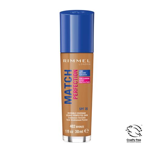 - Bij LOOKFANTASTIC kun je Rimmel London Match Perfection Foundation - 402 Bronze - Beige kopen voor de prijs van € 11,29. Dit is vandaag de goedkoopste webshop.